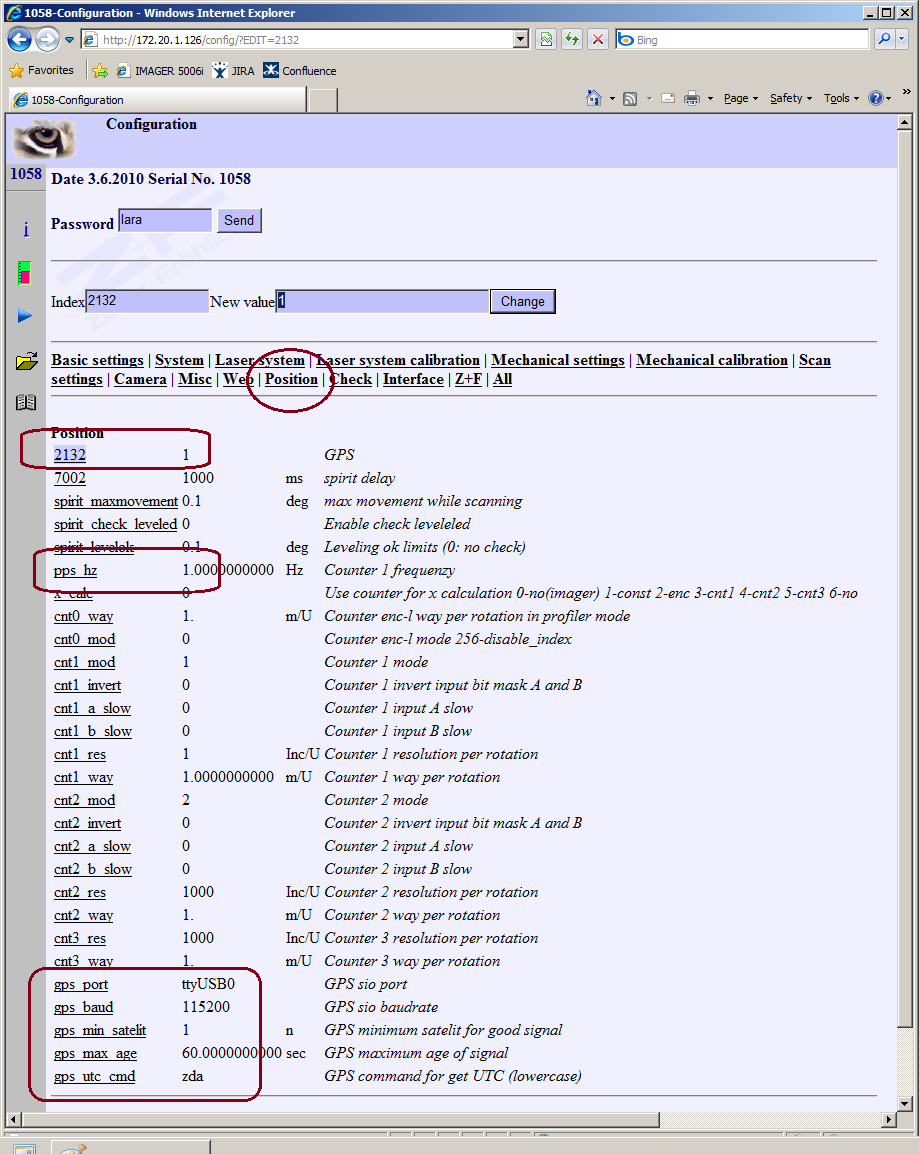 Go to the 'Position' or 'All' subpage and locate the '2132', 'gps_port', 'gps_baud' and/or 'gps_utc_cmd' setting.