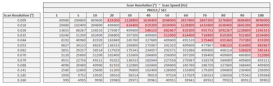 Scan Resolution | Select the required vertical angle resolution. Notice that some combinations with Scan Speed are not allowed. |