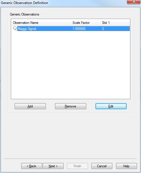 For each observation the identifier that corresponds with the field for which you are defining the observation needs to be entered as the slot i.e. 'S' when defining the magnetometer signal observation.