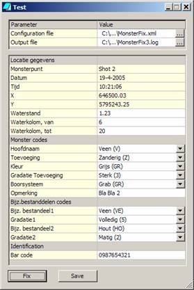 The second type is filled by the user using keyboard and/or mouse. When the user presses the 'Save' button the contents of all fields is written to a comma separated output file (See field 'Output file' in the driver UI).