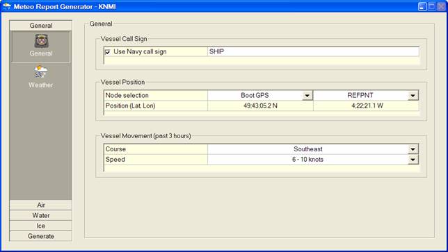 The Weather Report Generator generates a SYNOP report. This is a weather report sent from ships (manned platforms).