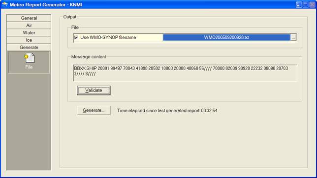 On the synoptic hours the user may walk through all the pages and check if all the settings are still valid or use the Validate button to check automatically all current values, prior generating a new report.