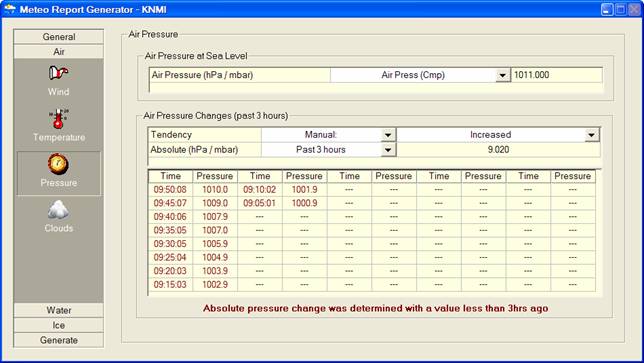 The Absolute Pressure Change, i.e. the difference of the current pressure with the one of 3 hours ago, can be entered manually, or automatically.