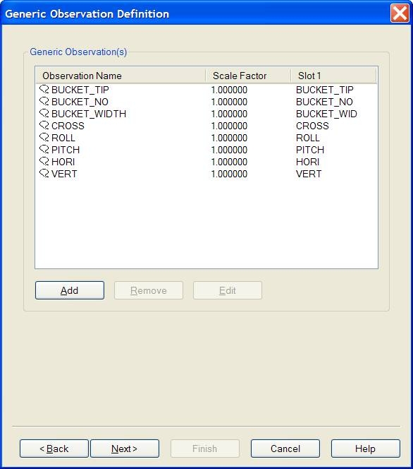 For this system the fields "BOOM1", "BOOM2", "STICK" and "BUCKET" are decoded as pitch observation. These fields are only available in the "Extended Data Telegram from XC1" message.In order to decode the roll and pitch of the crane (machine), add a Pitch, Roll and Heave Sensor System to your template and select the driver "MIKROFYN MikroDigger (Roll-Pitch) (Pitch)".