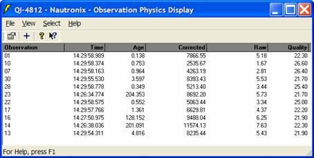 The ToF (Time of Flight) values are decoded as one way travel times, so the raw values seen in the Observation Physics are in seconds. The corrected values should reflect the actual range, in survey units.