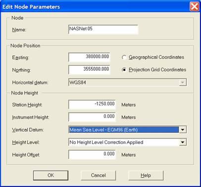 Enter the fixed node co-ordinates in easting/northings (grid) or in latitude/longitudes (geo). If for the station the depth below mean sealevel is given (and not a height), make sure to enter a negative number for the Height field, and set the Vertical Datum to Mean Sea Level.