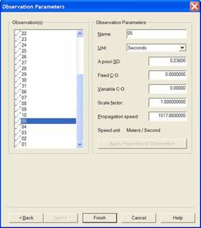 Therefore set for each observation the unit to "Seconds", and enter the right A-priori SD and the Propagation speed (sound velocity).