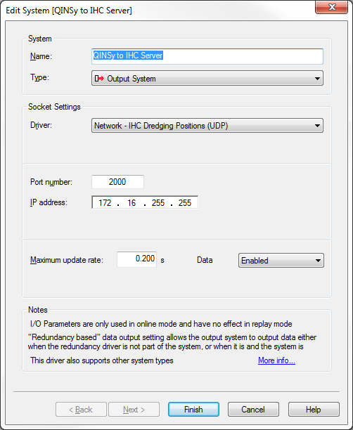 It is also possible to send triangles to the IHC computer. This is a different driver which uses TCP/IP for communication. The description can be found at: Network - IHC Dredging Triangles (TCP) - 15