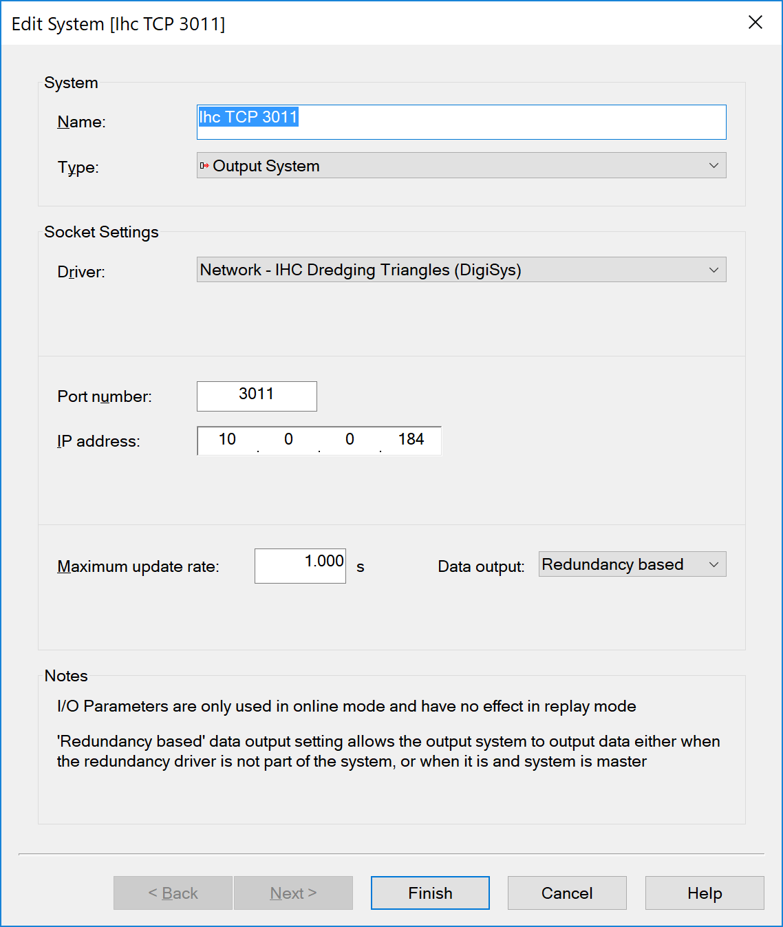 Driver | Network - IHC Dredging Triangles (DigiSys) | Interface Type | Network TCP | Driver Class Type | Terminated |