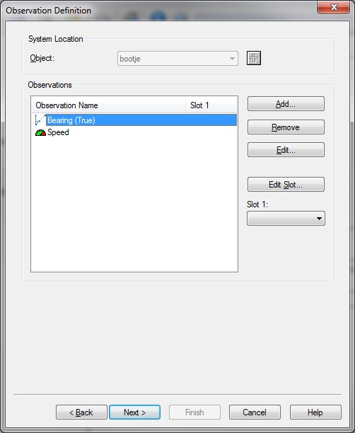 In order to decode the speed- and course over ground, add a Speed Log System to your template database and select the correct driver based on the used communication: "NMEA VTG (bearing & speed)", "Network (TCP) NMEA VTG (bearing & speed)" or "Network (UDP) NMEA VTG (bearing & speed)". On the second wizard page, add a 'Bearing (True)' observation, and add a 'Speed' observation. The slot ID can be left blank, the proper slot ID will be assigned at runtime.