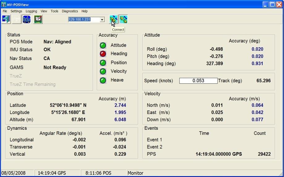 The exact LAN IP address of the unit should be provided by the manufacturer. Normally Applanix configures their units with IP address 129.100.1.2xx.