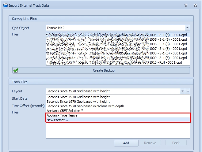 Therefore the online acquisition system can not use the True Heave in real-time, but it is possible to log this data to an external file on disk, and import the data during processing: