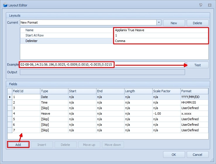 Time Fields, True Heave, True Heave RMS, Status, (Real) Heave, (Real) Heave RMS and Heave Time 1.