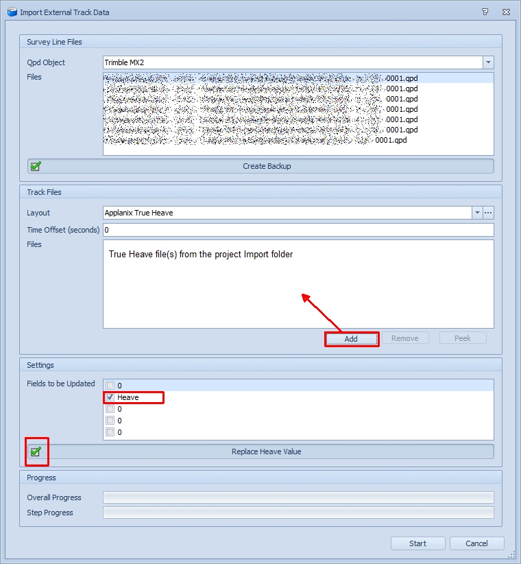The other way will involve some more steps. The intention is first, to import the heave data as raw observation into a recorded database. Secondly, Computation Settings needs to be changed and a Replay session has to be started, in order to create new DTM (qpd) files.