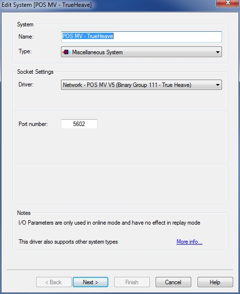 Add a Miscellaneous system to your template and select driver "Network - POS MV V5 (Binary Group 111 - True Heave)".