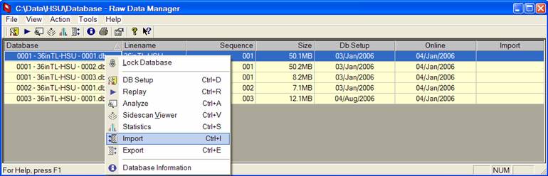Select a recorded database and start the import utility, using the right-mouse popup menu, or shortcut key <Ctrl>+I