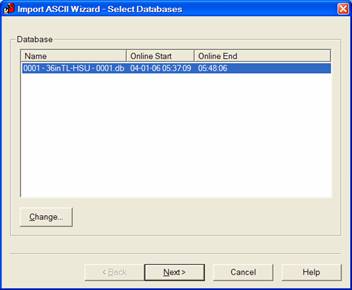 On the first wizard page of the Import Utility, you will see the start and end time of the recorded database. Use this time to check if the True heave log file covers this period.