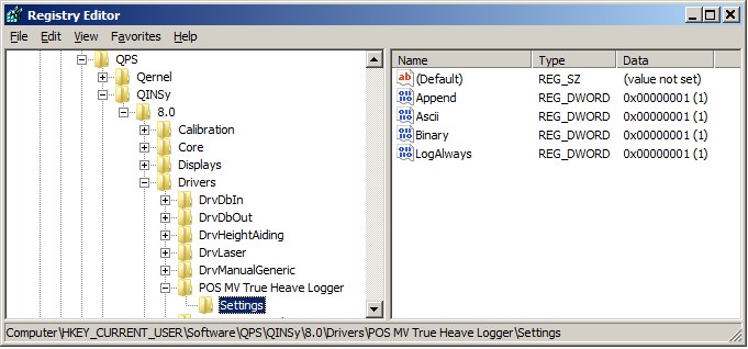 An advanced user may tweak the following registry key, in order to change the default behavior:"HKEY_CURRENT_USER\Software\QPS\Qinsy\8.0\Drivers\POS MV True Heave Logger\Settings"