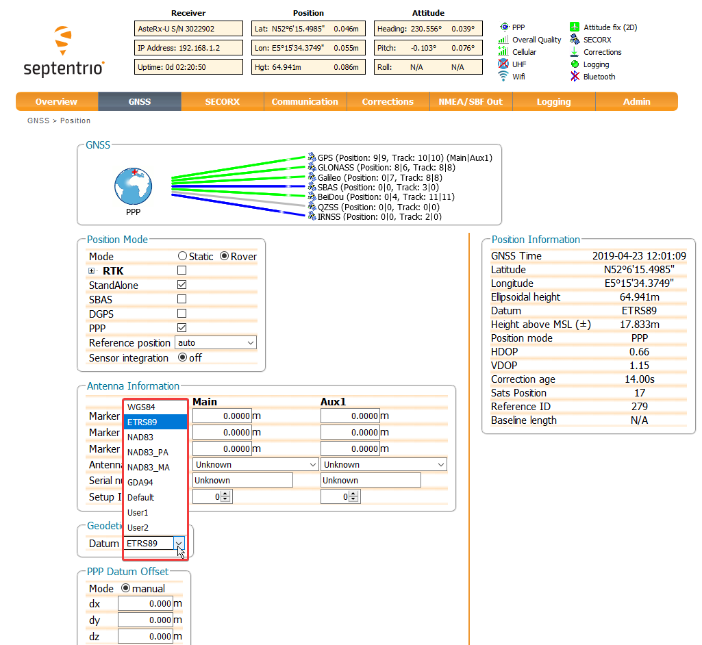 0.050 sec (20 Hz) - not possible with "AsteRx-U Fg" (MarineStar corrections)