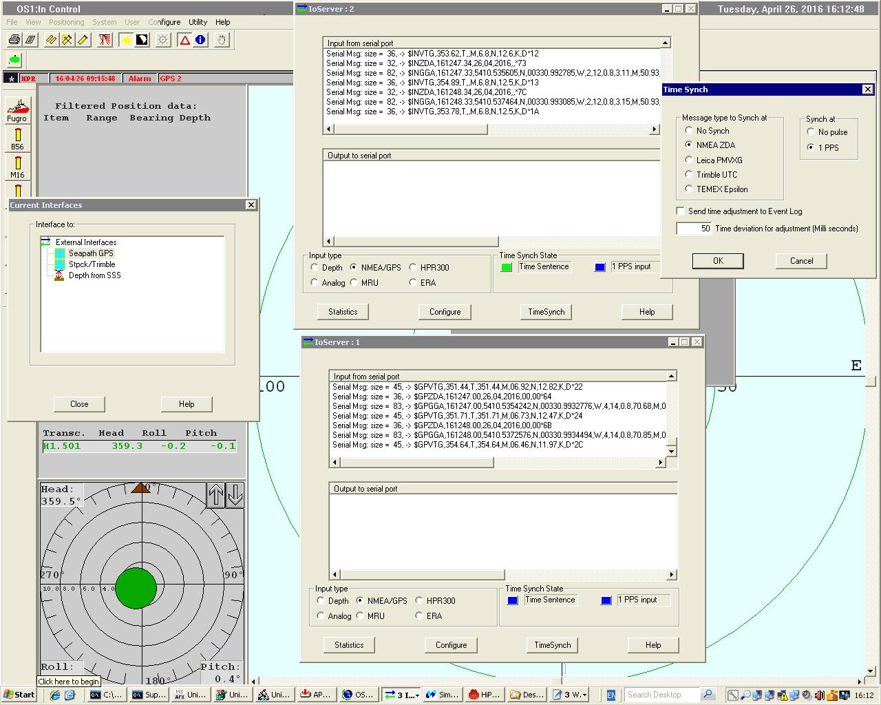 Notice that the Coordinate system on the APOS (Simrad unit) must be set to Radians.On the second wizard page the Receiver number must be the HiPAP transponder beacon code, but enter only a numerical value. E.g. you should enter for beacon "B09" the number 9. This receiver number (Beacon id) can not be changed while on-line.