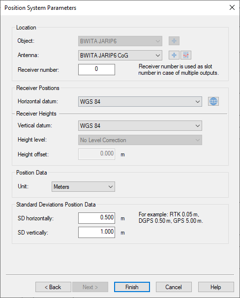 To decode the position (Lat/Lon/Height), add a system of type "Position Navigation System", select the same driver name and the same I/O parameters as for the other systems and define the antenna node and reference datum.
