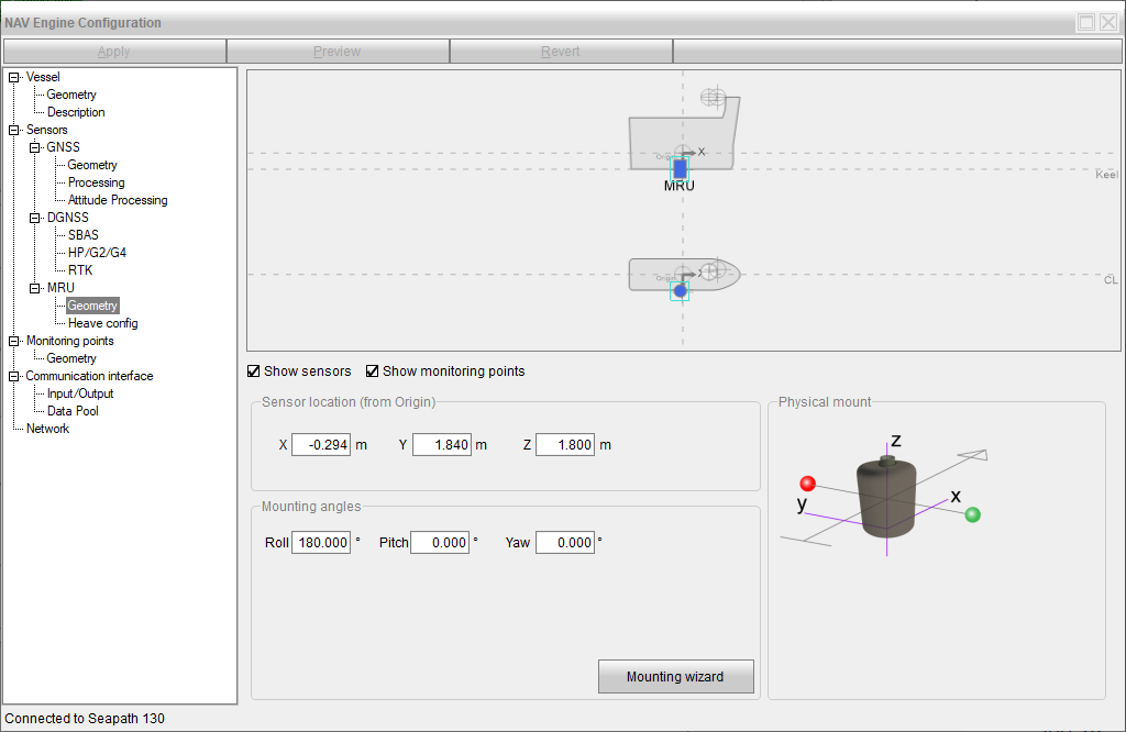 Node (Lever Arm) | Monitoring Location as set in the Seapath software |