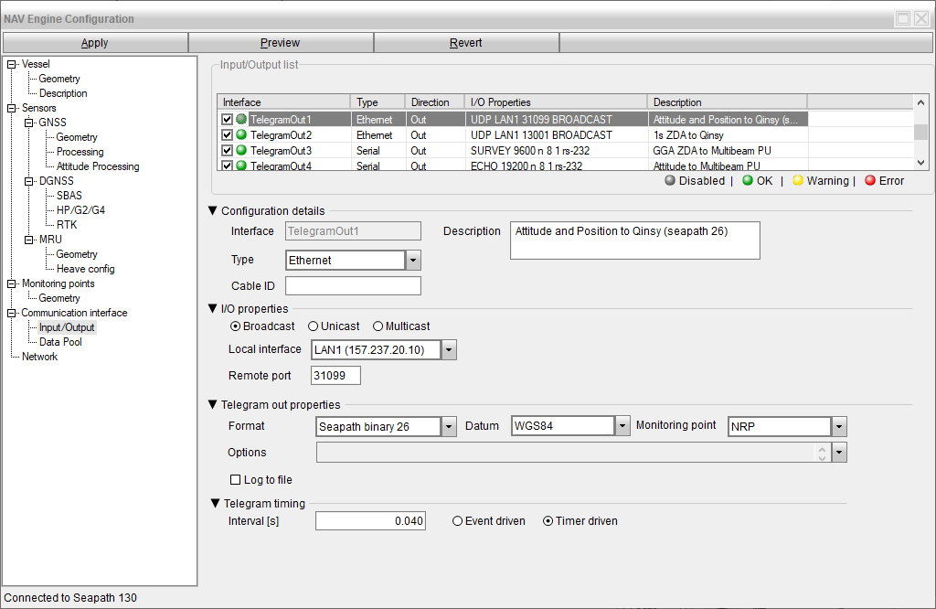 Driver | Network (UDP) - Seapath Binary Format 26/23 Position (UTC) or Seapath Binary Format 26/23 Position (UTC) |
