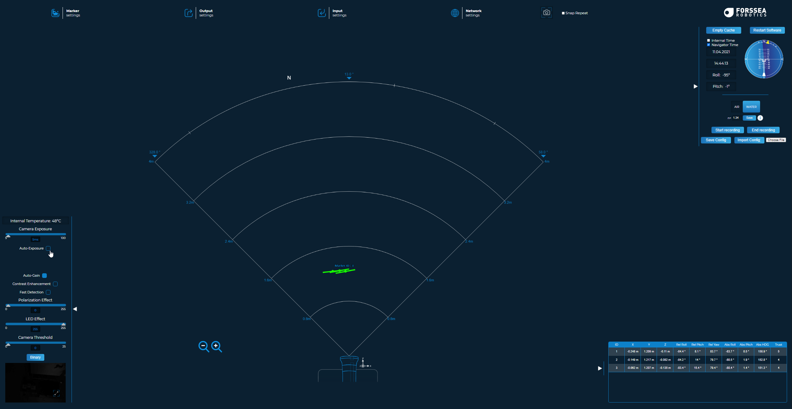 By interfacing the VLOC ABS, the absolute pitch, roll and heading of the Marker can be decoded. All the individual markers have their own reference frame.