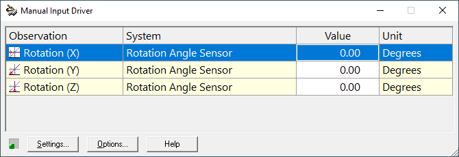 When online, an additional window is shown where the rotation offsets can be entered to align the reference frame of the Marker with the Object reference frame: