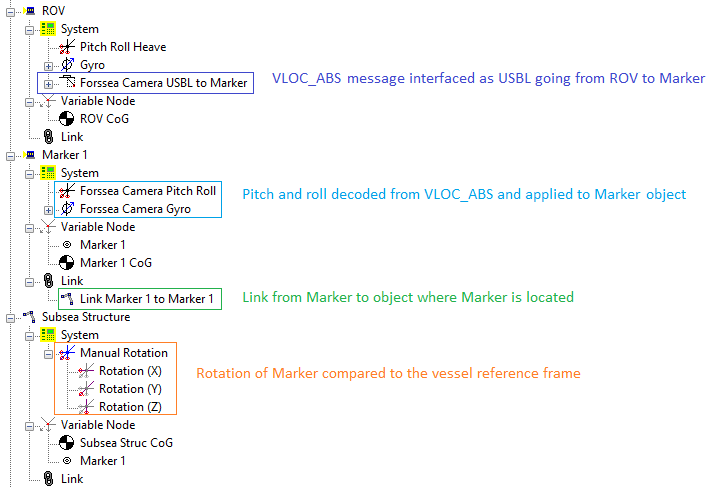 Link both marker nodes on the subsea structure and the Marker object itself.