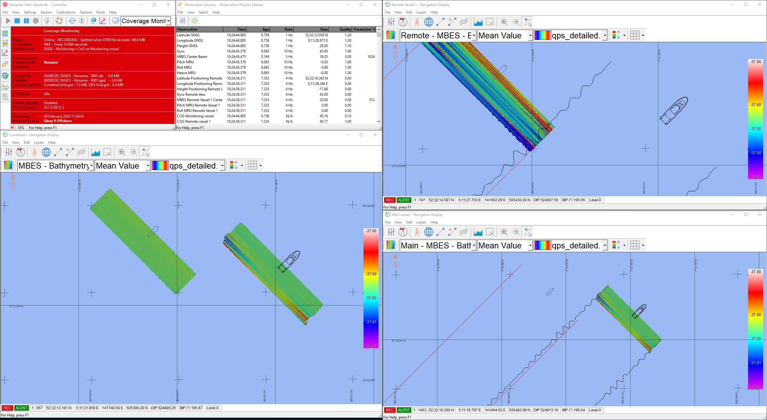 In order to use the Coverage Monitoring functionality you need to have Qinsy instances: the "main/monitoring" vessel and the "remote" vessels.