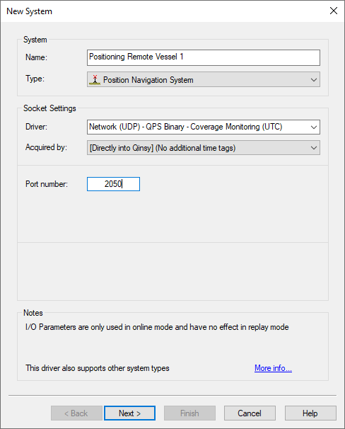 For the positioning of the remote vessels the user should add a Positioning Navigation System with the driver for Coverage Monitoring.