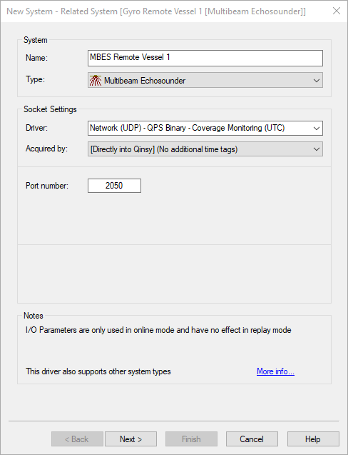 For the Multibeam data of the remote vessels the user should add a Multibeam Echosounder with the driver for Coverage Monitoring.