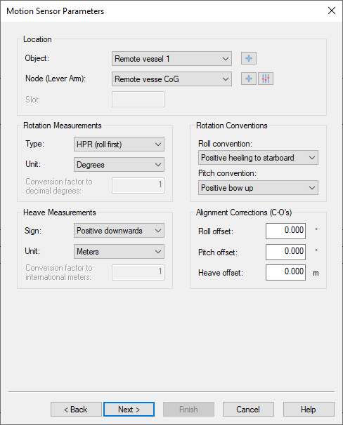 For the motion of the remote vessels the user should add a Pitch Roll Heave Sensor with the driver for Coverage Monitoring.