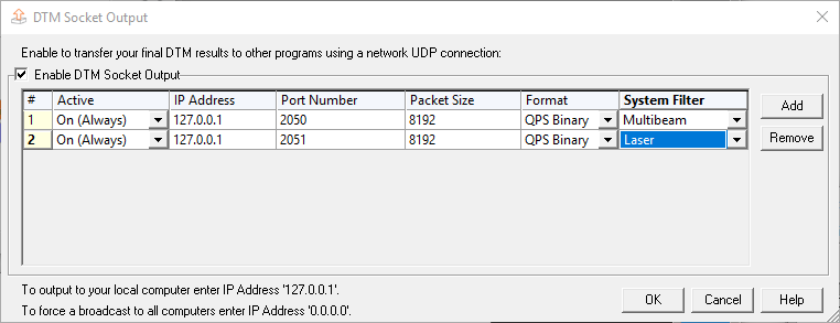 The Port number should correspond with the port number that is used in the DTM Socket Ouput from the Qinsy remote.
