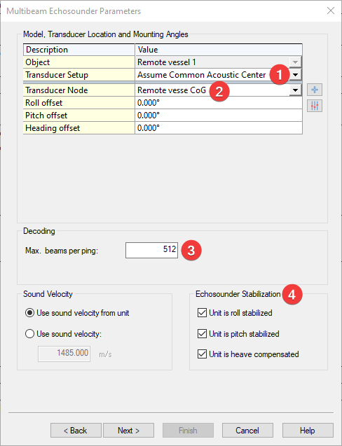 - Max. beams per ping should correspond with the number set in the multibeam system in the template of the remote vessel