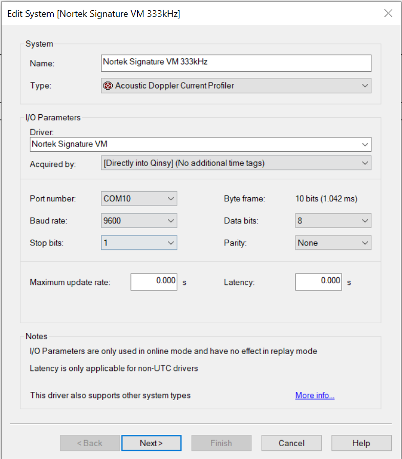 In the Qinsy Database Setup program, the following systems and observations can be created for this driver: