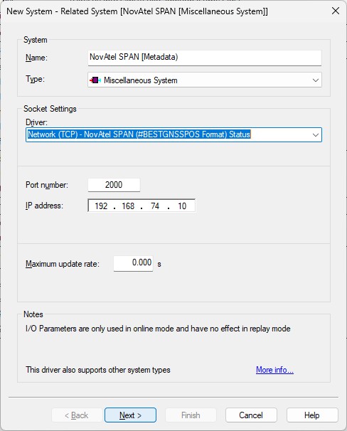 It is important to use the same interfacing settings for all 'NovAtel SPAN (#BESTGNSSPOS Format) ' systems in your template setup.