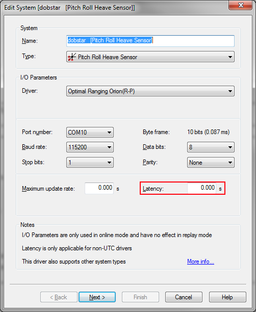 Because the Orion has a fixed delay between the actual observation and the time at which the message arrives in Qinsy, a fixed latency should be entered for each system that uses the Orion driver.