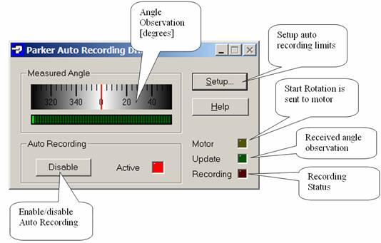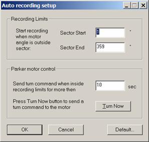 Define here the start/stop recording sector. If angle falls inside the range then logging will be stopped, if outside then logging is active.Parker motor control