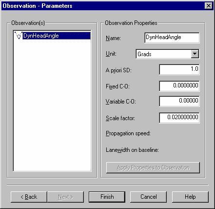 Add an angle observation with the following properties to the system: