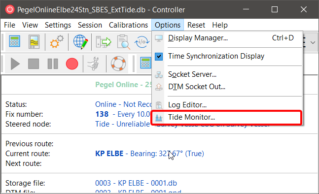 Tide received will automatically be available in the Tide Monitor and can be started via the Controller: