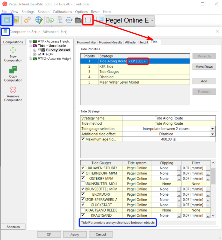 For the Computations you to add a tide method/strategy. Add a Tide Along Route strategy: