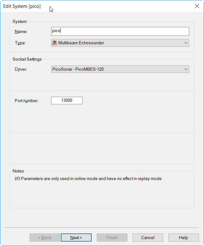 Driver | PicoSonar - PicoMBES-120 | Interface Type | UDP | Driver Class Type | I/O |