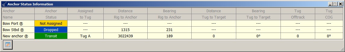 Anchor Information | When this setting is enabled on the master object, all locally defined anchors will be broadcast as so-called 'remote anchors'. When this setting is enabled on a slave object, possible transmitted anchors from the master will be received as 'remote anchors'. Remote anchors are purely for display: their information is visible in a Navigation Display but you can not actively do anchor handling with them: ![]() ![]() The advantage of using this option to send anchor information across the vessel spread is that it makes the use of a dedicated Anchor Output / Anchor Input driver obsolete. |