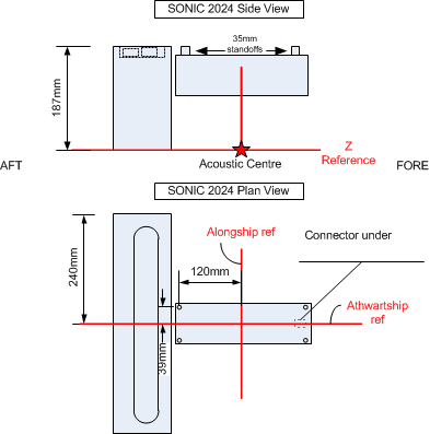 For the acoustic center definition refer to the figures below. Note that the Projector Z offset needs to entered in the R2Sonic GUI.