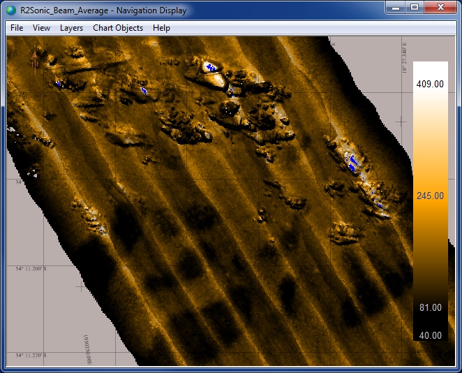 The multibeam driver can read the snippet data (SNI0 packets) as part of the Multibeam system. The snippets can also be shown in a sidescan display.
