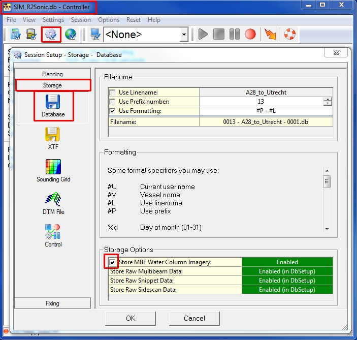 If you enabled the Raw Data for water column usage in Database Setup and you want to record the WCD0 data in the database, you can enable it in the Session Setup Dialog: Storage - Database options.