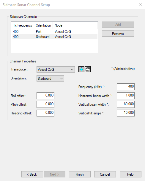 d. Sidescan Sonar Channel Setup