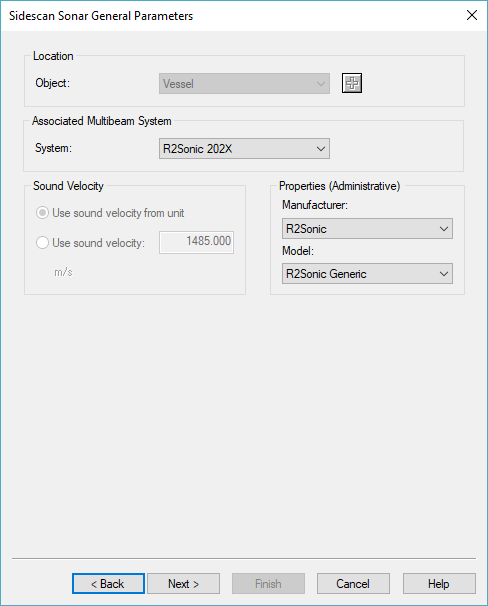When you click on OK a new wizard will be started to set up the related Sidescan Sonar system.